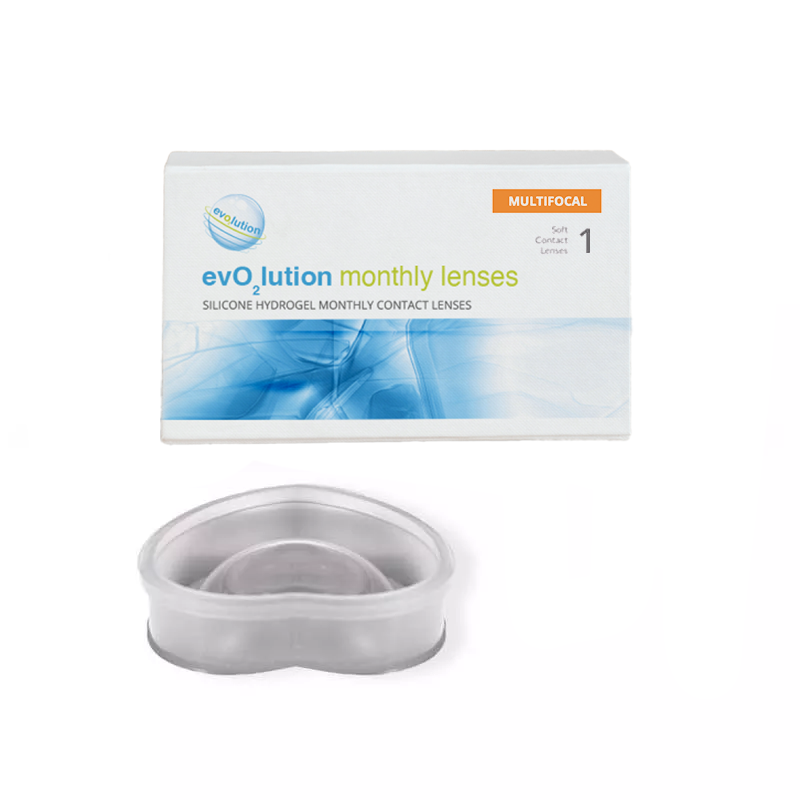 evO2lution monthly Multifocal to miesięczne soczewki progresywne (multifokalne) przeznaczone dla osób zmagających się ze starczowzrocznością. Zapewniają komfort noszenia nawet przez długie godziny. Oferta zawiera 1 soczewkę. Należy dokupić płyn oraz pojemniczek na soczewki. Soczewki dostepne również w zestawach z płynem evo2lution soft 100 ml.